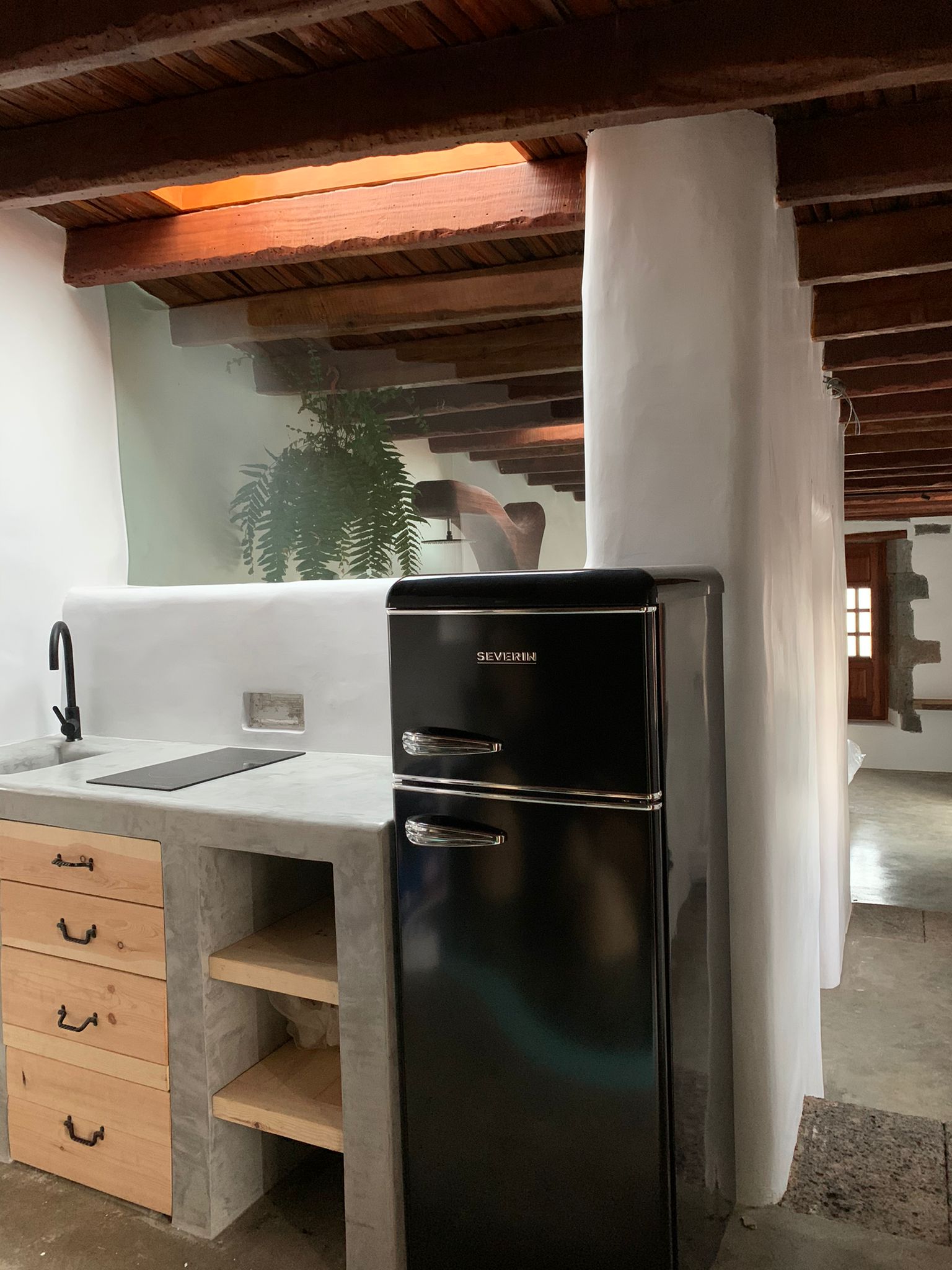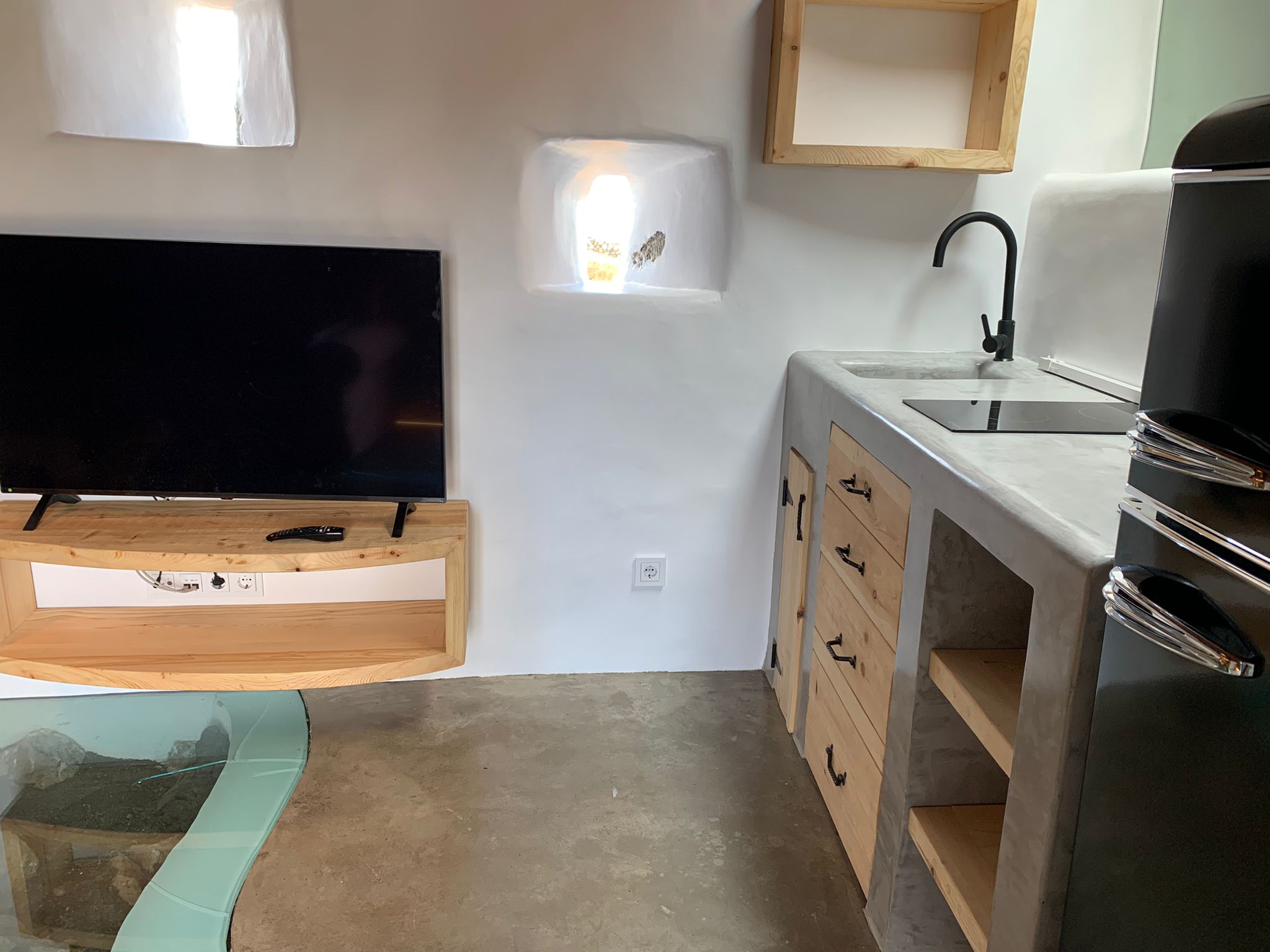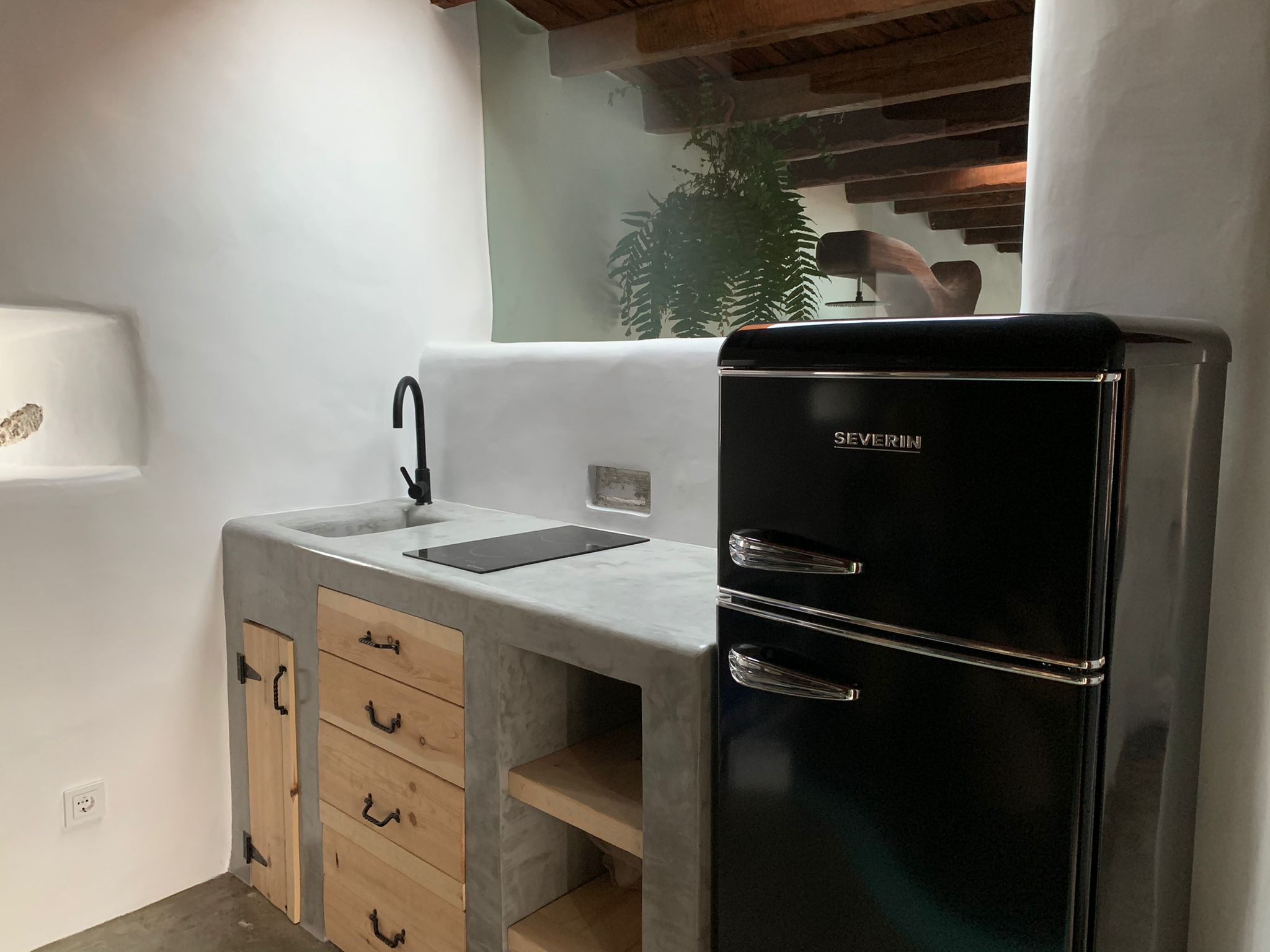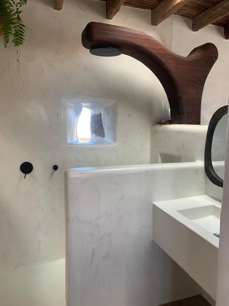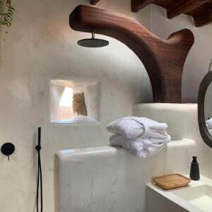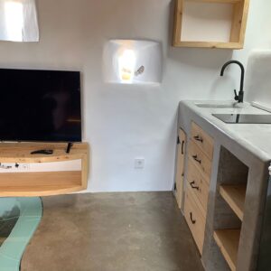 Destaca la amplitud de su cocina, con acceso directo a la terraza, donde poder disfrutar del amanecer. Cuenta con un innovador aseo, que permite poder tomar un baño en el interior de una bañera de madera o de una rápida ducha compartiendo la misma superficie.